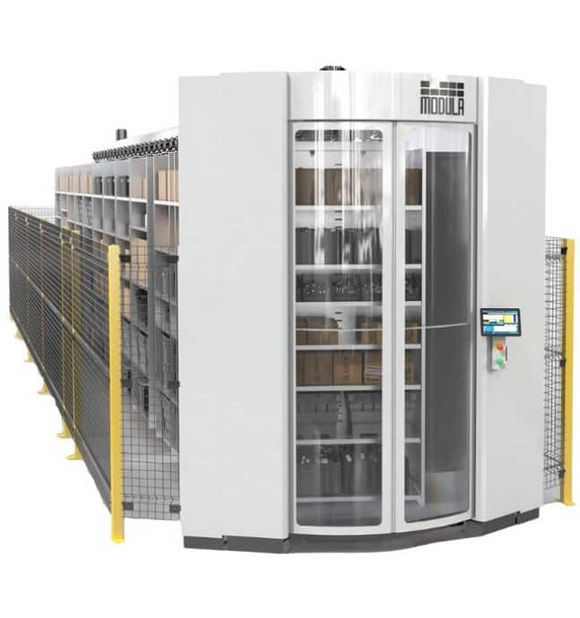 5.Modula自动化存储解决方案:我们的垂直升降模块(VLM)和水平旋转货架可与托盘箱和储物箱无缝配合,提供类似自动售货机的存储和取货系统。这些解决方案减少了操作员在走道中穿梭的需求,并提高了拣货速度。
