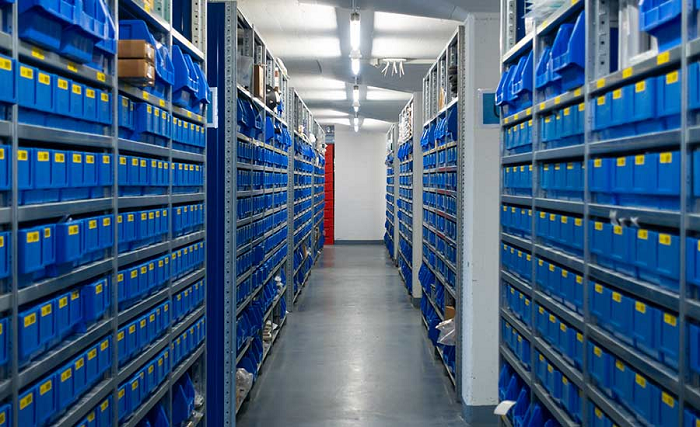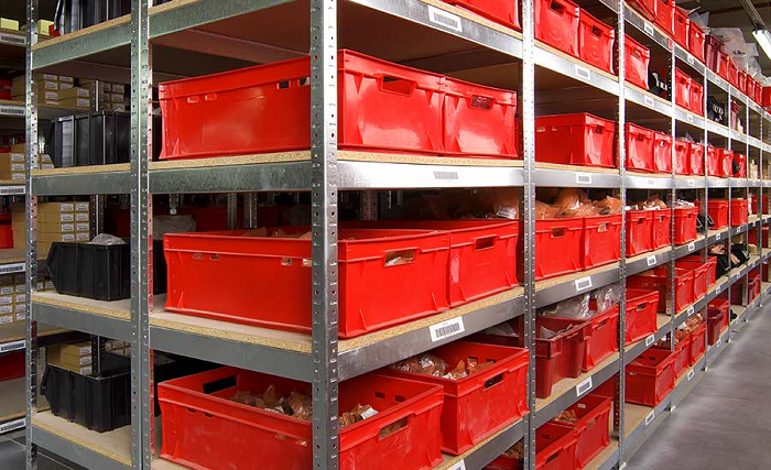 Standard shelving is one of the most common systems for storing small parts. It is often used with plastic totes or bins to organise and segregate individual SKUs.
